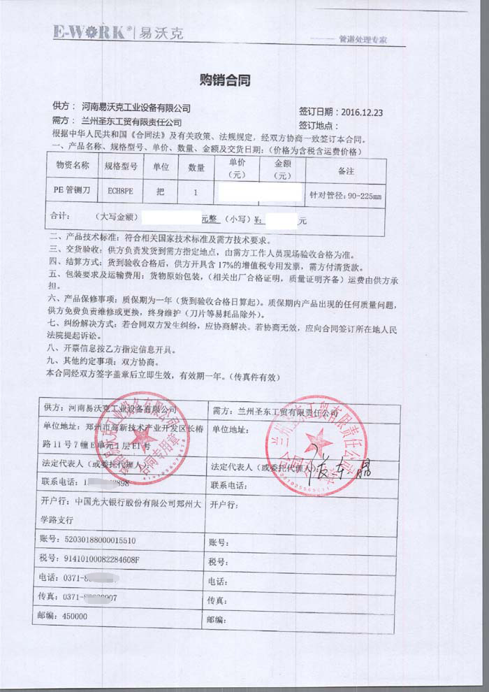 2016年蘭州圣東工貿(mào)有限責(zé)任公司合作業(yè)績